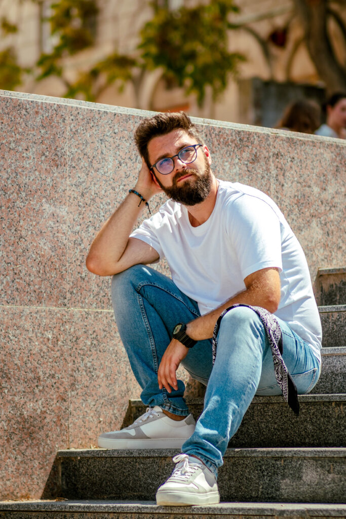 Marius e cel care nu face zgomot, dar lasă ecou. Cu o privire din aia care ar putea porni un film horror, și cu o voce care ți-ar putea vinde liniște sau angoasă, depinde de zi.